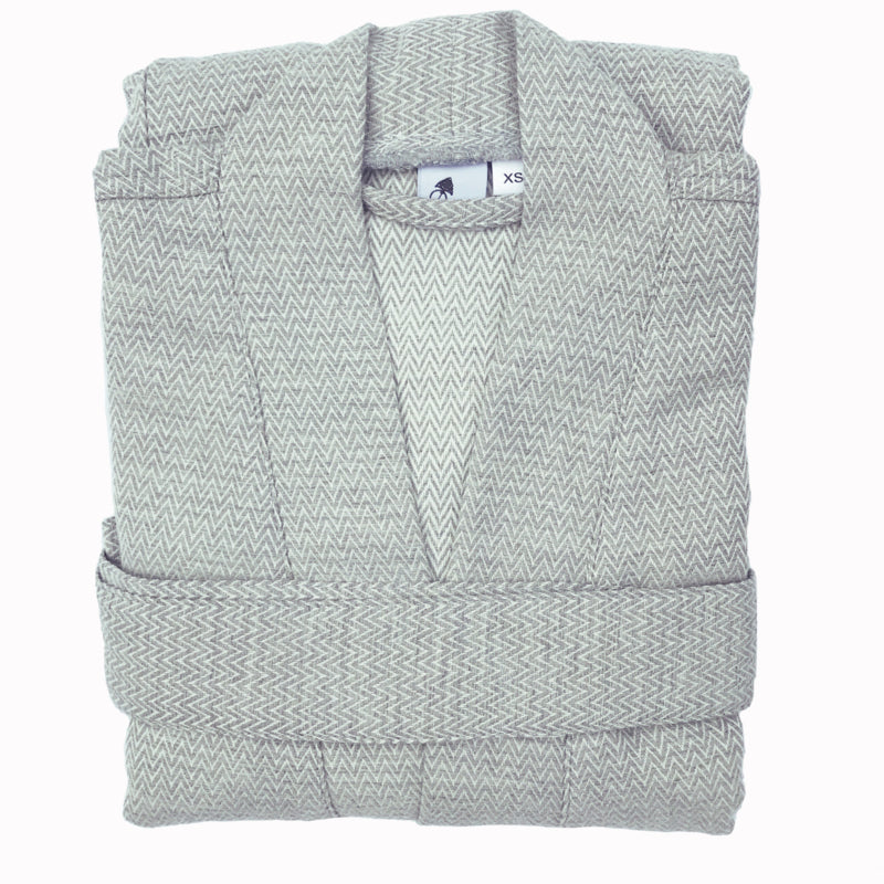 De badjas is van hydrofiel katoen en geweven in visgraat structuur. Voelt lekker zacht en licht aan. Geschikt voor man èn vrouw.