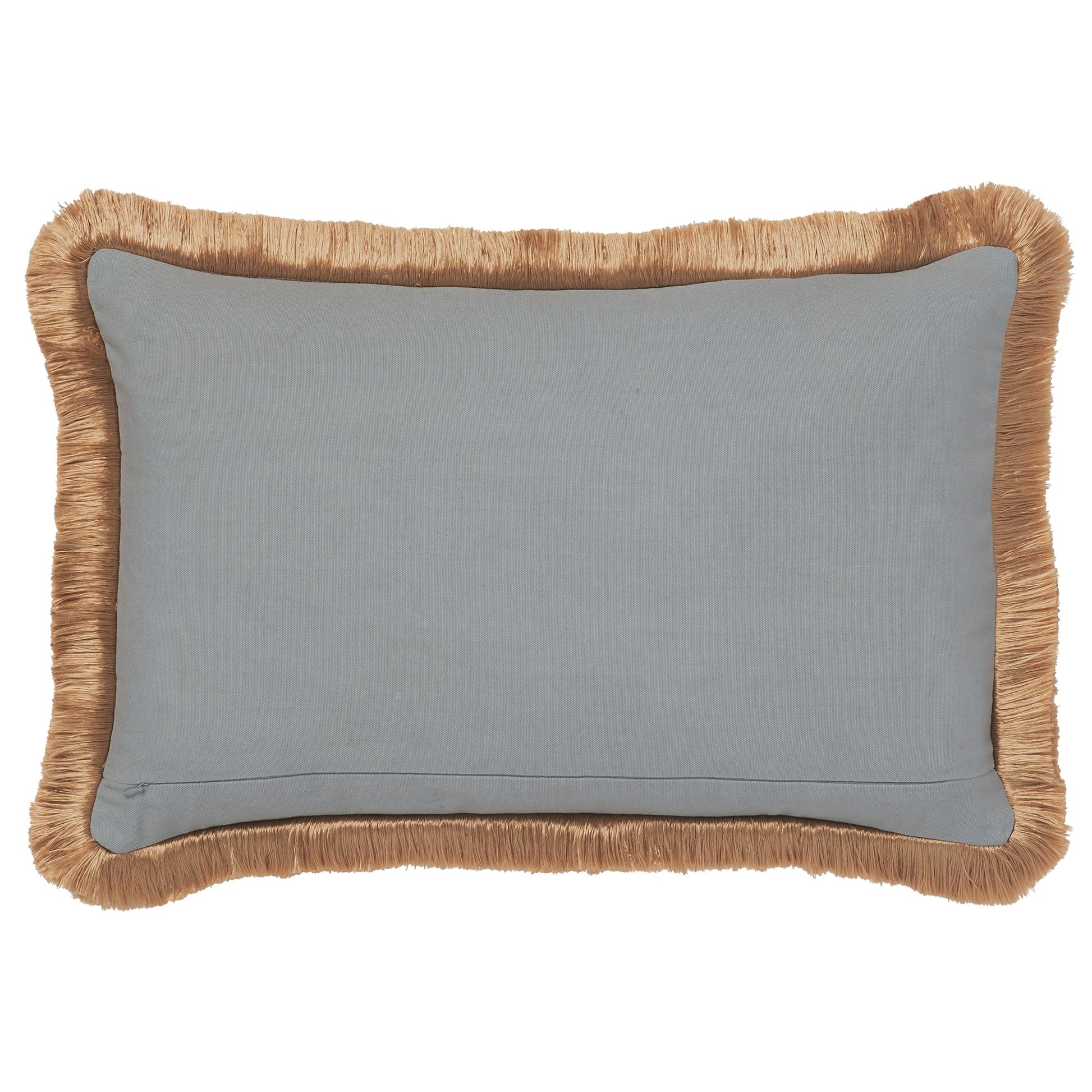 Add a refined touch to your interior with this striped cushion in smoky blue and warm spice. The rich tones and golden fringe create a sophisticated contrast that feels both modern and timeless, making it the perfect piece to elevate any sofa or armchair.
