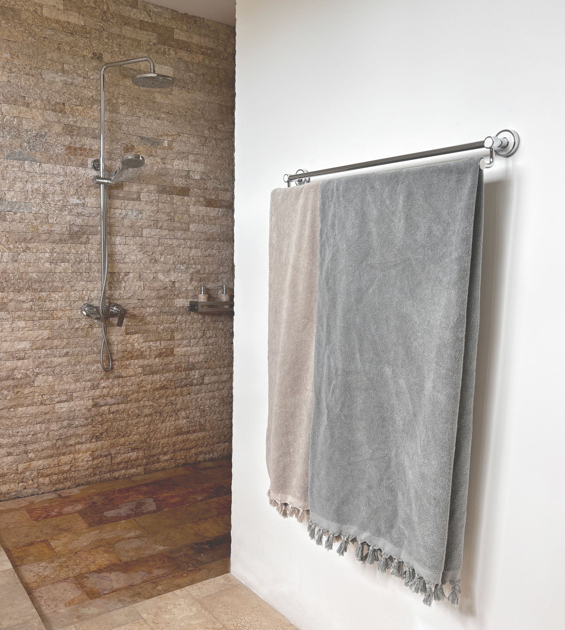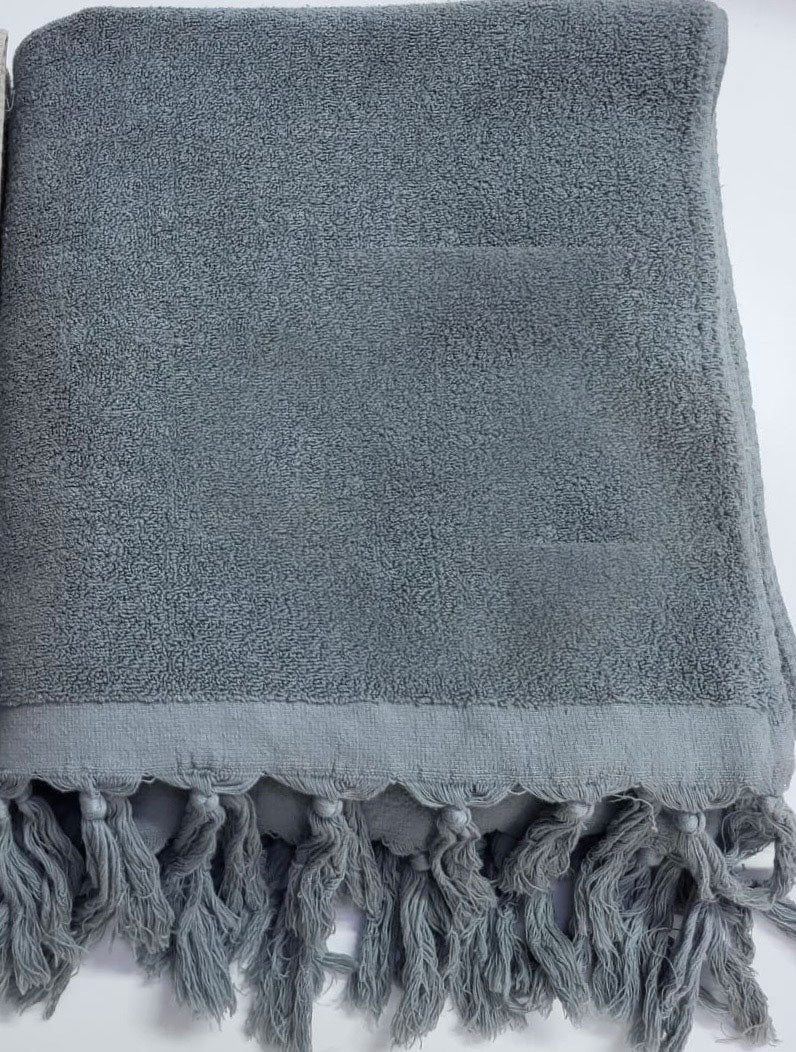 Een heerlijk zachte donkergrijze hamamdoek met badstof aan één kant. De hamamdoek of badlaken is met zijn afmeting van bijna 1 bij 2 meter zeer royaal van formaat! Hoewel zwaarder dan de lichtgewicht hamamdoek, blijft dit strandlaken een heel groot licht badlaken. De doek is in één stuk geweven en daarmee nog steeds lichter dan een gewoon badlaken. Handig voor onderweg.