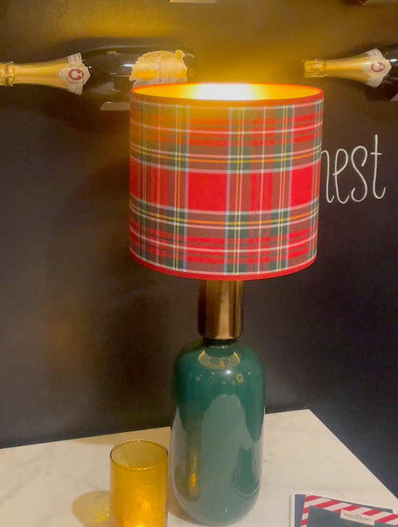Lampenkap Tartan rode Schotse ruit / diameter 25 cm / Hoogte 22 cm glanzend goud