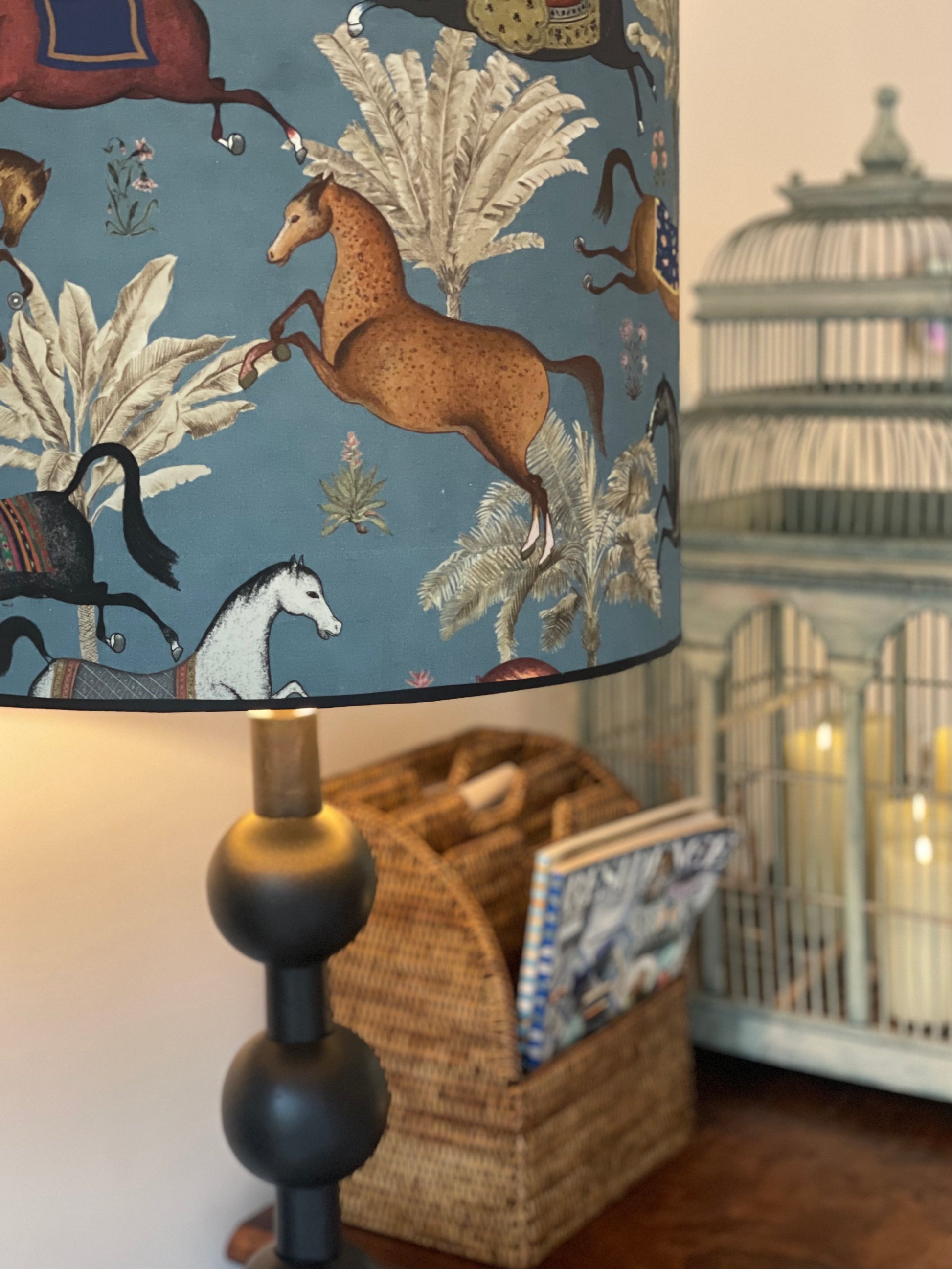 Lampenkap blauw paarden (Hermès) / diameter 45 cm / 37 cm Hoog
