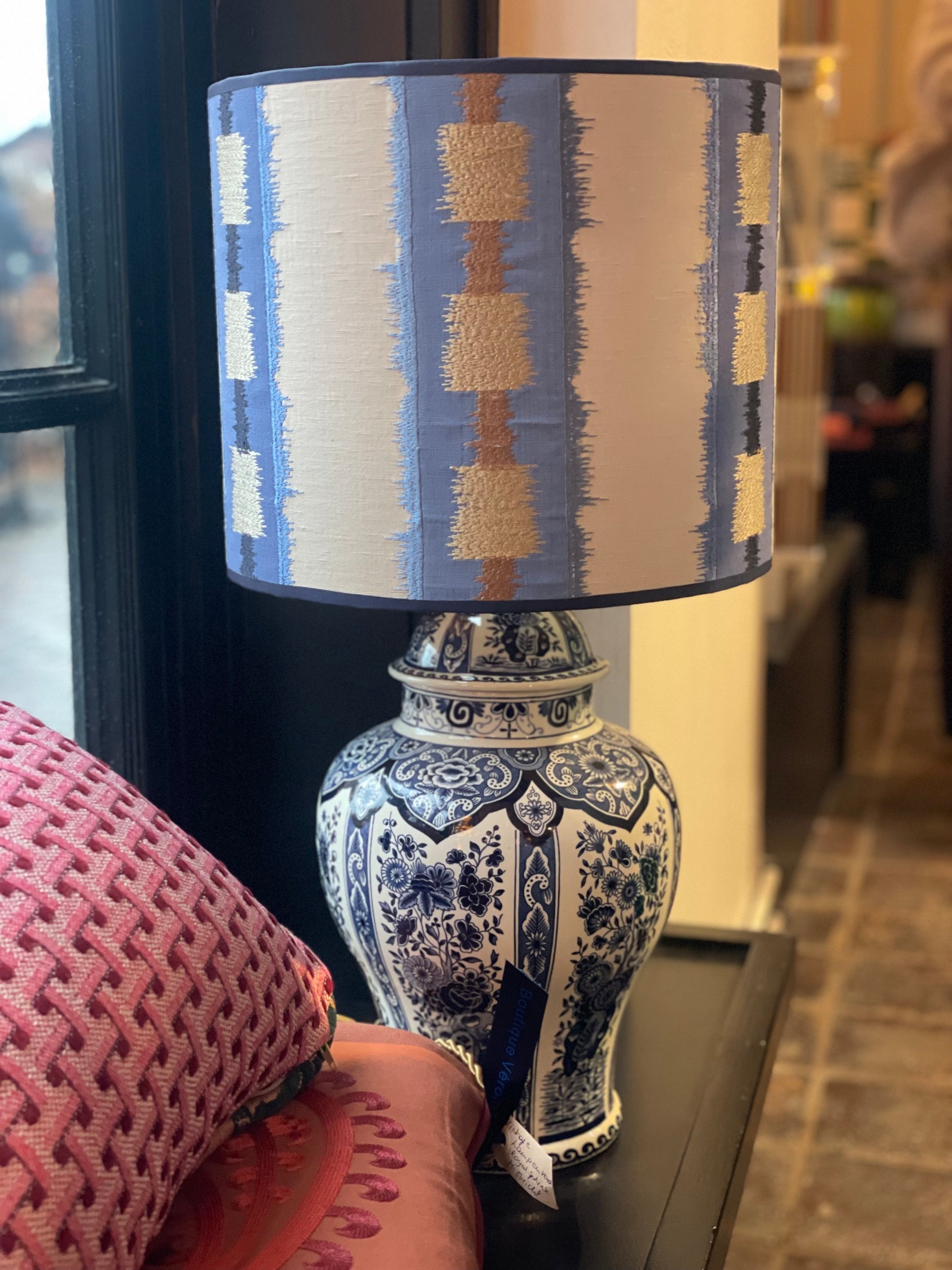 Lampenkap lichtblauw / goud / creme / diameter 30 cm (MC)