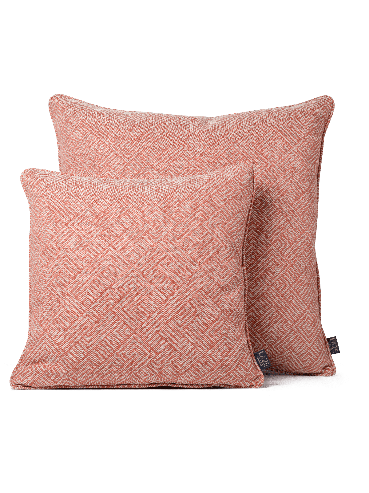 Koraal kleurig sierkussen ‘Maze’ verkrijgbaar in diverse maten.
