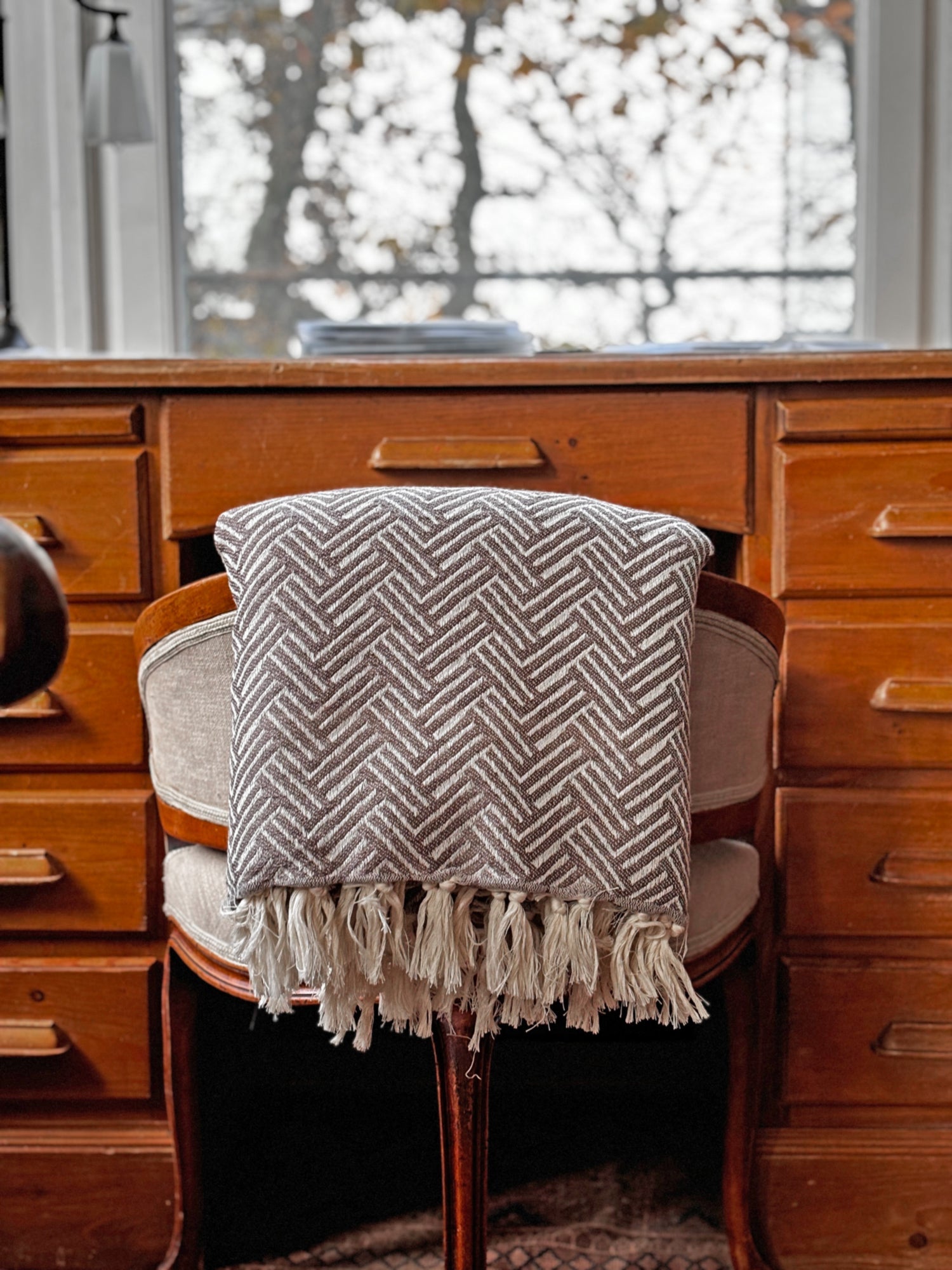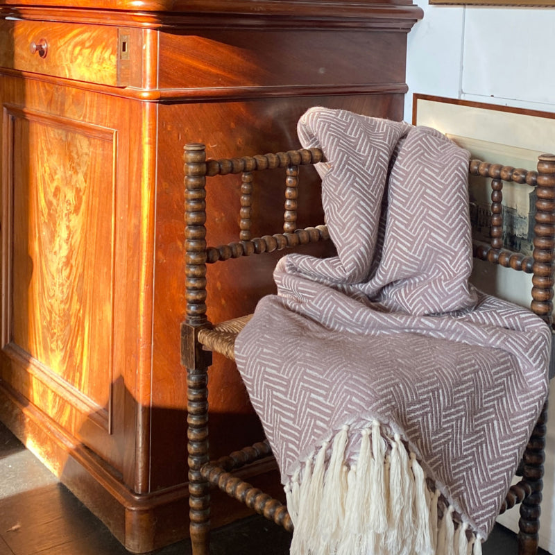 Een fijne lichte plaid of deken van wol met een vleugje katoen. De plaid voelt licht aan, maar geeft veel warmte
