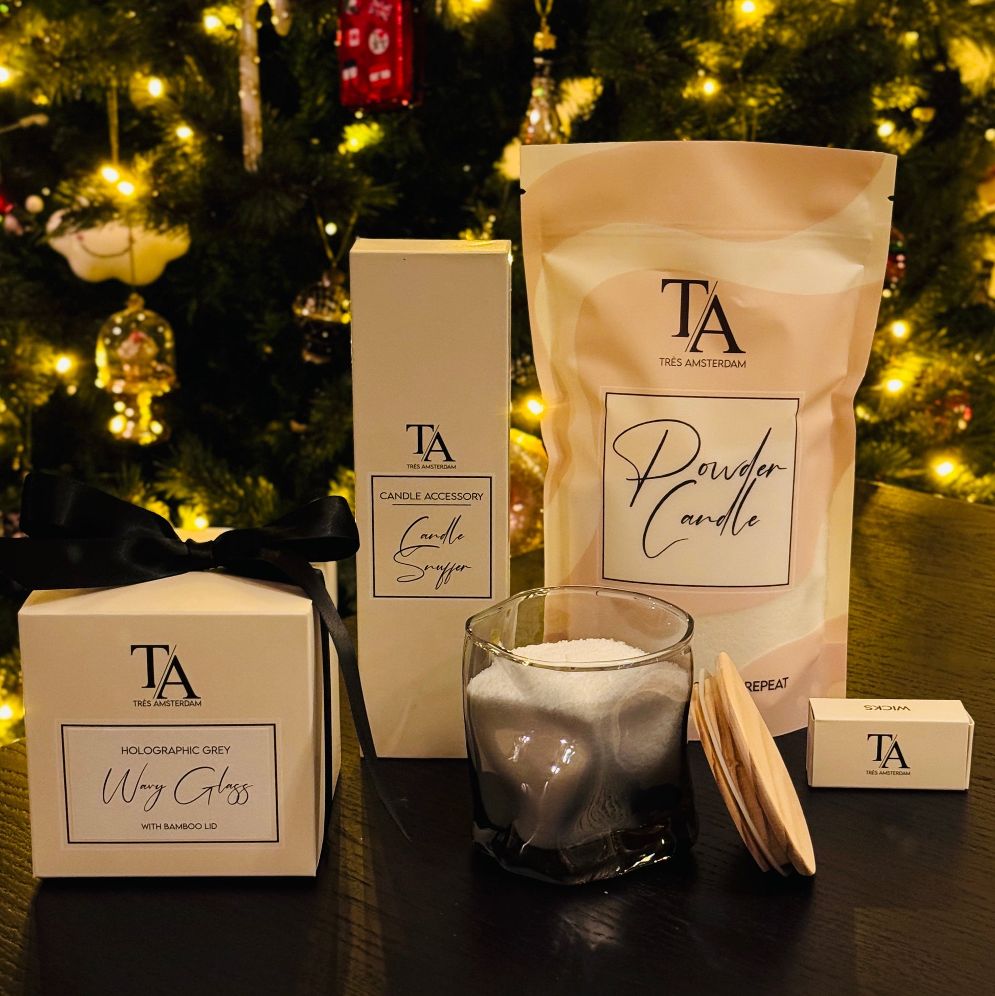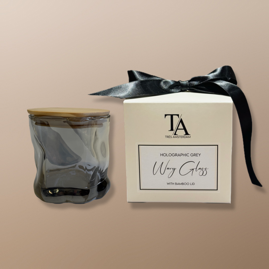Dit glas is een wavy hitte bestendig glas. Perfect te gebruiken voor onze powder candle. Maar uiteraard ook ideaal voor een waxine kaarsje of gewoon als drink glas.