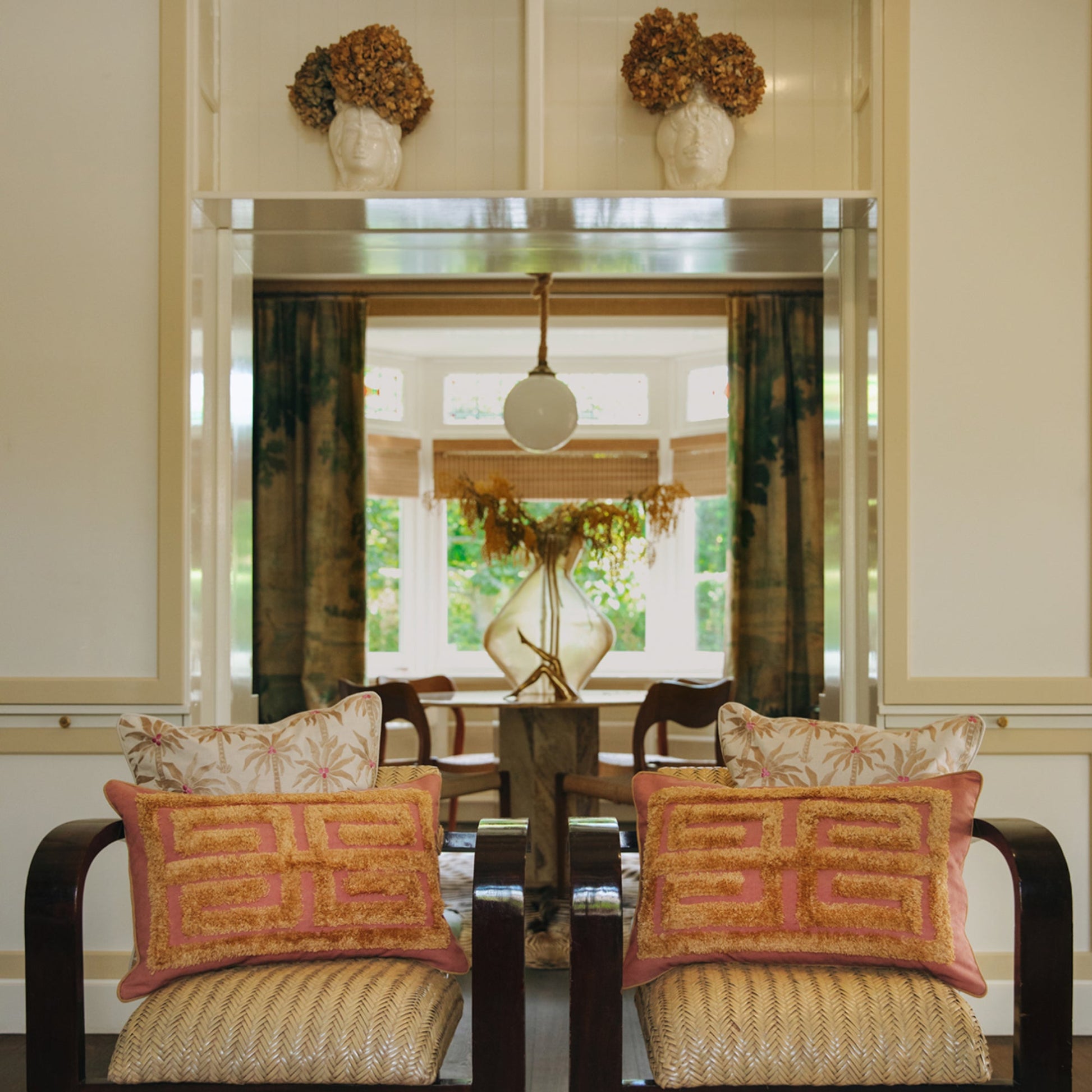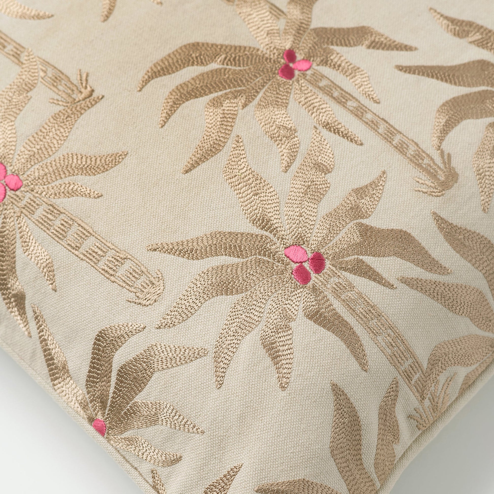 This luxurious cushion, adorned with intricately embroidered palm trees, evokes a sense of timeless tropical elegance, perfect for elevating any space. The detailed craftsmanship adds depth and artistry, transforming each cushion into not only a stunning decorative accent but also a comfortable retreat to relax and unwind.